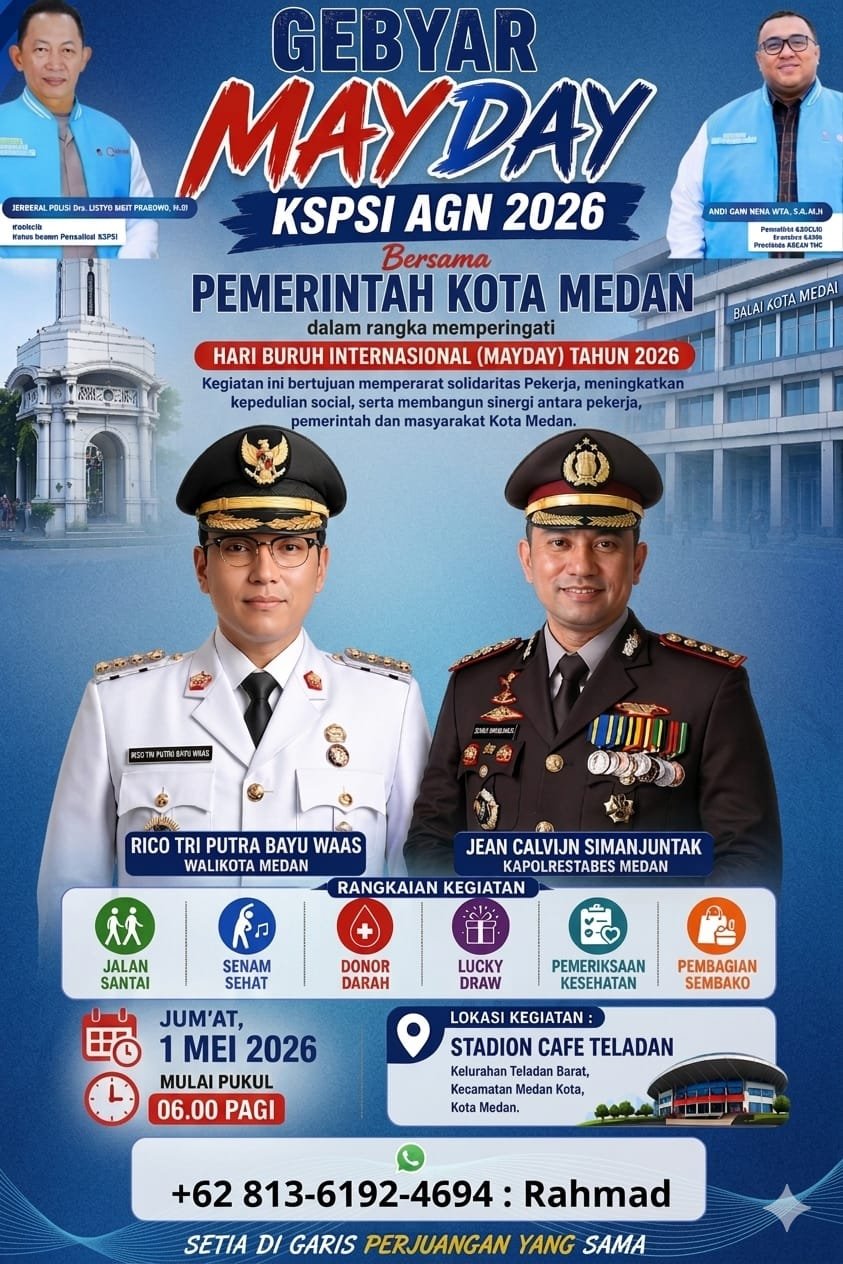 Medan, Langkatoday.com – Serikat Pekerja Seluruh Indonesia (SPSI) AGN Kota Medan akan menggelar peringatan Hari Buruh Internasional (May Day) dengan konsep yang lebih meriah dan menyentuh langsung kebutuhan masyarakat.