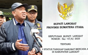 Bukan tanpa sebab: saat ia menghadiri seremoni akademik itu, Langkat tengah berlumur murka banjir. Ratusan warga masih terjebak di atap rumah, tidur lapar di lantai balai desa, dan berjuang melawan arus yang membawa lumpur, kayu, dan sisa harapan.