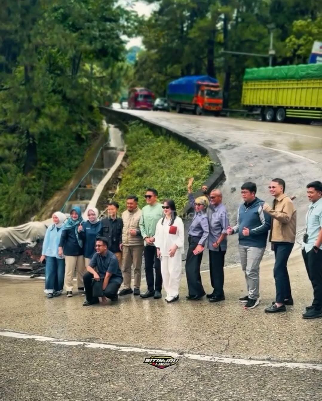 Dalam rekaman yang viral, rombongan tersebut tidak hanya mengambil foto dari sisi bawah, tetapi juga dari sudut atas tikungan. Mirisnya, beberapa orang tampak bersalaman di tengah jalan, yang mengakibatkan truk-truk besar dan kendaraan lain terpaksa berhenti total di tengah tanjakan curam yang berisiko tinggi.